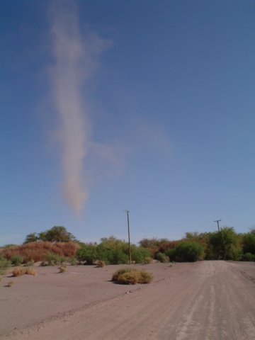Chegada ao Ayllú de Coyo, com redemoinho ao fundo
